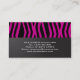 Tarjeta de visita con un diseño rosado del estampado de zebra. Esta tarjeta está lista para el arreglo para requisitos particulares con su información del negocio. Todo el texto puede ser modificado - cambie el estilo, colores, tamaños, añada o quite los campos del texto para adaptarse a sus necesidades. Si usted necesita alguna ayuda por favor enviar por correo electrónico Kirsty en kirsty_pargeter@yahoo.co.uk