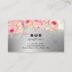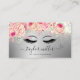 Este hermoso diseño de tarjeta de visita incluye textura metálica falsa purpurina plateada, rosas rosa rosa rosa rubor, pestañas y elegante fuente caligráfica.