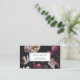 Tarjeta De Visita Elegante Floral oscura sobre negro | Código QR