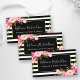 Elegante y moderno color de agua color rosa Rubor Floral y Gold Frame y Black & White Stripes Business Card