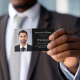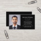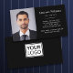 Tarjetas de visita modernas, elegantes y negras con el logo y la foto personalizado. Las fuentes, los colores de fuente y los colores de fondo se pueden cambiar con la herramienta de diseño.