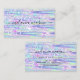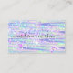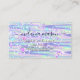 Tarjeta de visita púrpura holográfica pastel brillante elegante para maquillador