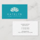Elegante plantilla de tarjeta de visita de personalizable con un icono de fondo/loto turquesa y fuentes en negrita. Diseño sencillo y elegante, perfecto para estudio de yoga, instructor de yoga.