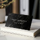 Elegante tarjeta de negocios de mármol con mármol negro impreso con venas blancas y doradas con tu nombre y título o profesión o especialidad en fuentes elegantes.
