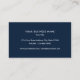 Con un atractivo clásico, este sencillo diseño minimalista tiene un marco triple en blanco que rodea tu nombre en la cara moderna de tipo sans-serif en la parte delantera de la tarjeta. El color de fondo azul marino puede cambiarse a cualquier otro color. La parte posterior tiene una plantilla de texto conveniente con información comercial estándar que puede personalizar con sus detalles. Para realizar ediciones adicionales, elija "personalizar más adelante" en la parte inferior de la plantilla de texto. Puede mover el texto, agregar o eliminar líneas de texto, cambiar el tipo de letra y el color de la fuente, etc.