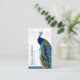 Elegante tarjeta de negocios temática de pavo real con un hermoso pavo real con plumas vívidas y tipografía moderna sobre un fondo de mármol blanco. Añade tu nombre y datos de contacto para hacer una primera impresión duradera.