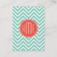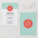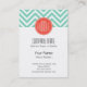 Tarjeta De Visita Elegante Monograma Mint Green Chevron y Naranja