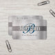 Tarjeta De Visita Elegante Monograma Nombre, Lt & Dk Cepillado Plata