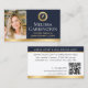 Tarjeta De Visita Elegante Notario Público Foto QR Azul oscuro dorad