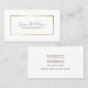 Estas tarjetas de visita son sencillas, sofisticadas, profesionales, elegantes y elegantes. Cuentan con unas letras doradas y un falso borde dorado sobre un fondo blanco. Perfecto para una amplia variedad de profesiones, se adaptan fácilmente a sus necesidades.