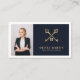 Moderna, elegante y profesional tarjeta de presentación de un agente inmobiliario con un marcador de foto que refleja su personalidad y hace una gran primera impresión. El diseño incluye su nombre en letras manuscritas en negrita, logotipo y título en letras en bloques en un fondo marino y blanco. Personalice más con sus datos de contacto, código qr y medios sociales en la parte posterior.