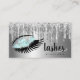 Este magnífico diseño de tarjetas de visita con pestañas y brochas presenta una textura metálica purpurina de goteo de plata falsa, pestañas florales de menta y elegante fuente caligráfica.