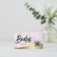 Tarjeta de visita de brillo holográfico rosa femenino elegante y bello