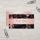 Tarjeta de Visita Elegante Rosa Oro Rosa Mármol Negro Ágata