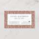 Una visión minimalista de un purpurina de oro rosa acentuado con tipografía gris y blanco suave y moderna en un simple diseño de tarjetas de visita que puede personalizar en línea en una variedad de existencias de papel de alta calidad para su estilista, maquillador, azotes de negocios o cualquier empresario pequeño o influyente social. Los colores del texto, las fuentes y el diseño se pueden editar haciendo clic en Personalizar Más adelante