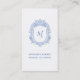 Tarjeta De Visita Elegante Rosas ornamentales Escudo Monograma Azul