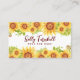 Esta moderna y elegante tarjeta de visita está decorada con girasoles amarillos acuarelas. Haría una tarjeta de visita ideal para cualquier pequeña empresa o servicio, como instructor de yoga, fotógrafo, terapeuta, entrenador y muchos más. Personalizar con su nombre comercial, nombre y datos de contacto.