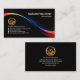 Al dorso, el logo dorado está en la parte superior seguido por el nombre de la empresa, detalles de contacto y una opción de lema para publicitar sus servicios.