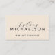 Esta moderna tarjeta de visita de terapeuta masajista combina un elegante guión de escritura a mano negra y simples letras de letra sans serif en un fondo beige neutro. Personalízalo con tu nombre y título en la parte delantera, junto con tu información de contacto y código QR del sitio web en la parte posterior.