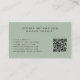 Tarjeta De Visita Elegante Terapia de Masaje QR Código Sage Green