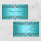 Elegante y elegante tarjeta de negocios Verde azulada azul plateado Grabado en relieve de Damasco Floral Elegante en todas las ocasiones Imagen de joyas de diamantes
