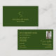 Tarjeta De Visita Elegante verde de bosque liso con monograma y foto