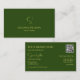 Tarjeta De Visita Elegante verde de bosque plano con código QR monog