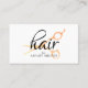 Elegante plantilla de tarjeta de visita de personalizable con icono de tijeras de oro FAUX y fondo blanco. Diseño moderno y limpio, perfecto para peluquería, peluquería, salón de belleza.