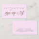 Diseño elegante de tarjetas de visita con texto falso rosa "maquillador" y fondo lila.
