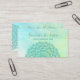 Crea una tarjeta de visita única de yoga con una elegante flor de mandala sobre un elegante fondo de color verde verde azulado.