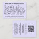 ¡Mira este dulce arte hecho a mano por ti! Añade tu propio texto al frente y al fondo de esta tarjeta de agradecimiento. Perfecto para incluir con pedidos de clientes. Añade tu código de descuento y tu propio texto a la parte posterior y tu propio sitio web al código QR. Todo es personalizable. No dudes en añadir tu propio texto al personalizar o cambiar los colores. Visita mi tienda para más información o hazme saber si quieres algo personalizado.