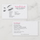 Moda y moderna tarjeta de visita, perfecta para los profesionales de la belleza, barra de latigazos, servicios de extensión de microblading y lash, así como para los artistas del maquillaje. La fachada presenta un ilustracion moderno, minimalista y sorprendente de elegantes pestañas, emparejadas con una tipografía limpia en negro y rosa que le confiere un toque profesional y femenino. La parte posterior incluye todos los detalles esenciales de contacto y las horas de apertura en un diseño limpio, garantizando la practicidad y el estilo. Este diseño exuda sofisticación, lo que lo hace ideal para técnicos excéntricos, salones de belleza o esteticistas que quieren dejar una impresión duradera.