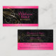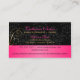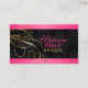 © 2013 Socialite Designs. Nuestra elegante tarjeta de visita incorpora una elegante decoración de remolinos dorados, elementos de diseño rosa y un fondo negro de damasco. Una bonita tarjeta de visita para un negocio de lujo. Todos los elementos de diseño se pueden mover, cambiar de tamaño o eliminar individualmente para que se adapten a sus necesidades. TENGA EN CUENTA QUE LOS DISEÑOS ORO Y ROSA SON IMPRESIONES IMPRESAS Y NO RELIEVE METALIZADO REAL.