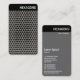 Una plantilla vertical de tarjeta de visita con un encabezado negro con una imagen en el frente. Nombre de la empresa en el encabezado de la parte delantera y posterior con todos los demás datos de contacto de la parte posterior. La foto o imagen en el frente también puede ser cambiada. El diseño también permite una gran personalización.