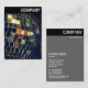 Una plantilla vertical de tarjeta de visita con un encabezado negro con una imagen en el frente. Nombre de la empresa en el encabezado de la parte delantera y posterior con todos los demás datos de contacto de la parte posterior. La foto o imagen en el frente también puede ser cambiada. El diseño también permite una gran personalización.