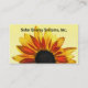 Esta tarjeta de visita es un anuncio para un equipo y una compañía de energía solar de la instalación. El frente ofrece un naranja, un amarillo y un girasol hermosos del oro abierto de par en par contra un fondo amarillo claro. Todo el texto se puede modificar para requisitos particulares para caber sus necesidades del negocio personal.