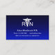 Diseño de tarjetas de visita médicas para enfermeras registradas en un estilo sencillo con emblema de R.N. e información de contacto para una R.N. que trabaja con servicio privado o medicare en salud domiciliaria, un hospital local o un consultorio médico.