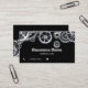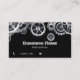 Tarjeta de visita del estilo de Steampunk, con el fondo negro con los engranajes de plata de 3 dimensiones.