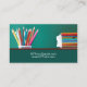 Una sorprendente tarjeta de visita con un montón de libros de fondo verde azulado. Esta gran tarjeta funcionaría bien para servicios privados de tutores, empresas de entrenamiento de estudios de exámenes u otras organizaciones educativas. Fácil de personalizar con la información de su propia empresa.