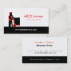 Tarjeta de visita moderna, lisa con rojo y negro. La tarjeta de visita tiene una silueta de un motor en una camiseta roja del gorra y del polo, moviendo una caja enorme delicado usando una carretilla. Gran tarjeta de visita para cualquier persona que está en el trueque, la entrega, acarreando servicios, el transporte, la logística o negocios móviles. Personalice fácilmente con sus detalles del negocio.