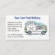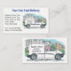 Tarjeta de negocios Fast Food Delivery con imagen divertida de una camioneta de entrega de comida rápida.