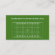 Se corta un futbol en una cama de hierba esperando que lo recojan. La información de contacto principal imprime contra la hierba con información web imprimiendo sobre el propio fútbol. El reverso muestra un diagrama de un campo de fútbol contra el verde sólido. Una etiqueta u otra información imprimida arriba. Perfecto para entrenadores de fútbol, equipos, buenas tiendas deportivas o cualquier comercio deportivo. Disponible con productos a juego.