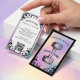 Eleva tu marca de fitness con nuestra tarjeta de presentación de entrenador personal holográfica iridiscente, que presenta un juego de mancuernas dibujadas a mano dentro de un marco de pergamino ornamentado contra un fondo holográfico iridiscente falso para un look audaz y moderno. La parte delantera destaca tu nombre y título, mientras que el reverso muestra tu información de contacto, identificadores sociales y código QR para reservas fáciles. Los acentos holográficos brillantes combinados con detalles negros elegantes crean una estética contemporánea llamativa perfecta para entrenadores personales, entrenadores de fitness, dueños de gimnasios y profesionales del fitness que buscan una tarjeta de presentación única, profesional y memorable. Diseño e ilustración por ©Moodthology Papery.