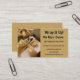 Las características de esta tarjeta de visita envuelta a la derecha son los detalles del negocio. En la parte posterior hay un campo para obtener información adicional. El texto de ambos lados es editable, por lo que se cambian los detalles, así como el estilo de fuente, el tamaño y el color. También se puede cambiar el color de fondo de ambos lados. Disfruta de tu nueva tarjeta de presentación de regalo editable.