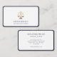 Red con confianza usando nuestras tarjetas de visita azul marino adornadas con un logotipo de escala de justicia dorada con un fondo blanco limpio y simple, enmarcado en esquinas redondeadas azul marino. Estas tarjetas se diseñan para abogados, bufetes de abogados y profesionales del derecho, ofreciendo una interacción memorable y profesional.