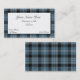 Plantilla de mirada majestuosa de la tarjeta de visita, hecha en una tela escocesa de tartán tradicional del clan de Clark del escocés. Un área de texto blanca sólida sobre la tela escocesa azul, negra, y blanca, tiene texto negro. Personalice todo el texto para adaptarse a sus necesidades.