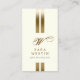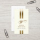 Esta hermosa y elegante tarjeta de visita para escritor independiente, impresa y publicada, tiene un diseño sencillo que comprende dos bandas doradas que corren verticalmente en el centro de la tarjeta, con un descanso hacia la mitad inferior donde aparece la inicial del monograma en una hermosa fuente caligráfica de escritura. Debajo aparece tu nombre y título/texto. Los datos de contacto aparecen en la parte posterior de la tarjeta. Fuerte, claro, moderno, tipo de letra se utiliza en negro para contrastar con el fondo blanco roto. Perfecto para imprimir, publicar, publicar, escribir, autores, literatura, literatura, libros, brillante, blanco, dorado, rayas, fuertes, profesionales, modernos, moda, temas elegantes. La naturaleza genérica de este diseño lo hace adecuado como tarjeta de visita para cualquier tipo de negocio o profesión.