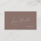 Elegante y moderno guión de firma caligráfica manuscrita nombre de tarjeta comercial genérica de color marrón y blanco con escaneo de código QR en sitio web, catálogo o portafolio. Adecuado para los profesionales de la belleza: maquilladores, peluqueros, técnicos de uñas, especialistas en azotes y cejas, influyentes, estilistas personales o blogueros de estilo de vida.