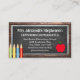 Fondo de pizarra gris oscuro y negro con fondo de grano de madera. Comparte los detalles de tu profesor con los padres, estudiantes y compañeros educadores con esta tarjeta de visita sobre temas educativos y escolares. Ideal para la enseñanza primaria, media, secundaria y universitaria. Fondo oscuro con texto de título personalizado y detalles personalizado. Lápices coloridos y formas de manzana con la imagen del tablero de letras de estilo primario, ideal para un tutor, un colegio de tutores o un instructor o administrador sustituto. Ideal para un evento escolar de adolescentes o niños o regalo de profesores relacionado con la educación.