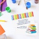 Vuelve a la escuela lista con esta bonita tarjeta de visita para profesores de personalizado decorada con un arcoiris de colores y lápices de colores. Personalice estas tarjetas de bonito con el nombre de su profesor preescolar o de su profesor de guardería favorito y los datos de contacto de los padres. La parte trasera tiene un montón de libros.